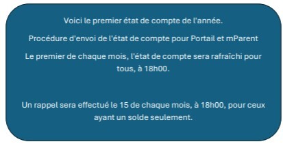 Procédure d'envoi de l'état de compte pour Portail et mParent