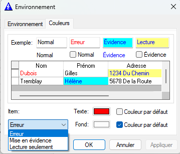 Pour ce faire dans GPI : Outils - Préférences - Environnement "Onglet : Couleurs".